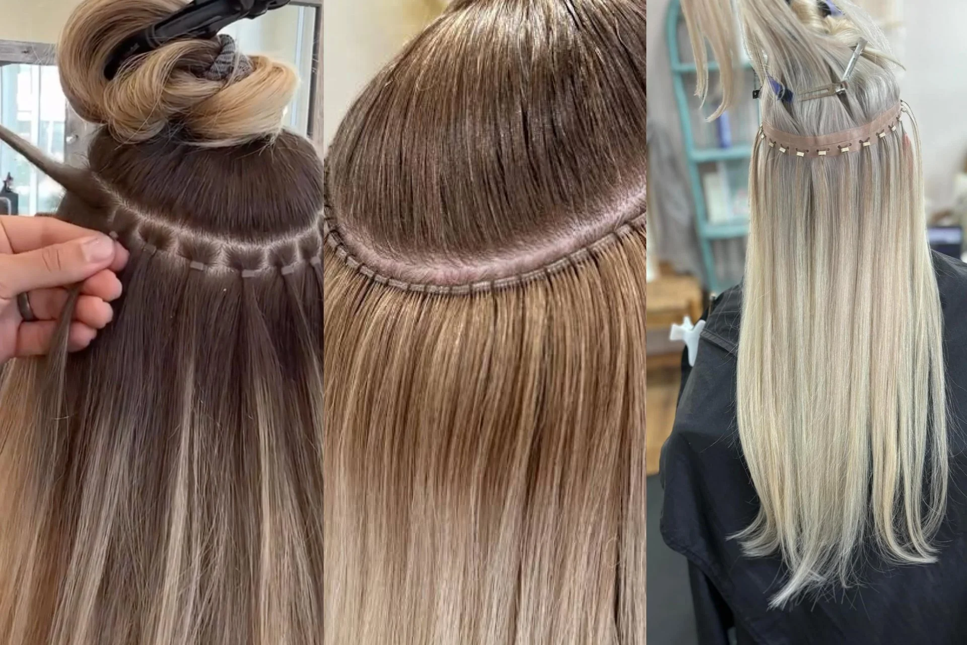 Installation: Wefts are attached to a flexible bead foundation using a precise, tension-controlled method that eliminates exposed corners and beads.Pros: Incredibly discreet — beads and wefts remain hidden, even when hair is worn up. Lightweight and flexible, making it ideal for finer hair types. Comfortable to wear, with reduced tension on the scalp. Beautifully flat and seamless blends.